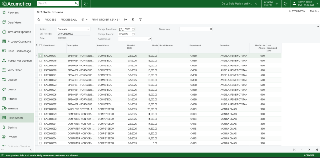 Customized and extended Acumatica ERP modules to align with De La Salle’s business processes, including tailored forms, workflows, and integrations, improving operational efficiency, data accuracy, and user experience across the organization.